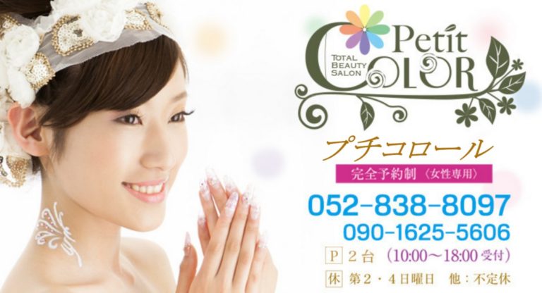 名古屋市昭和区にある、白を基調としたトータルビューティーサロン、Petit COLOR(プチコロール)。パーソナルカラー、ネイル、まつげエクステ、まつげカール、ヘアメイク、着付けを中心にサービスを行っております。