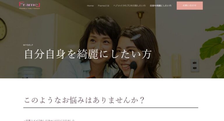 Frameは、サロン所属のメイク担当・山田さんが運営しているカラーサロン。3時間30分のメイクレッスンが、税込16,500円で受けられます。レッスン枠の受講者が1名の場合、マンツーマンでのレッスンとなりますが、料金は 通常の¥16,500となります。(マンツーマンセルフレッスンの料金とは異なります。)