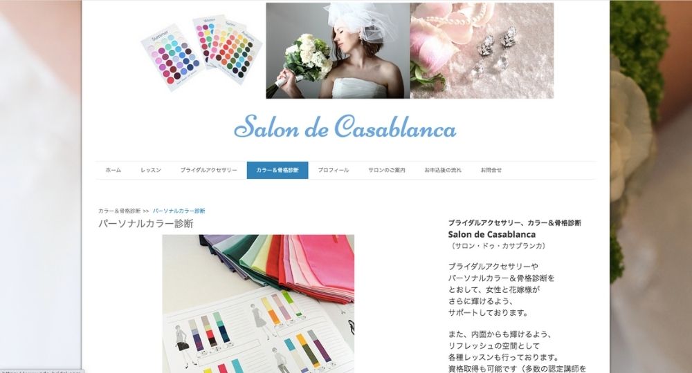 Salon de Casablancaは、カラーアナリストの由井さんが主宰するサロンで、4シーズンのパーソナルカラー診断を16,500円(税込)で受けられます。色見本スウォッチ(布製色見本)をプレゼント。