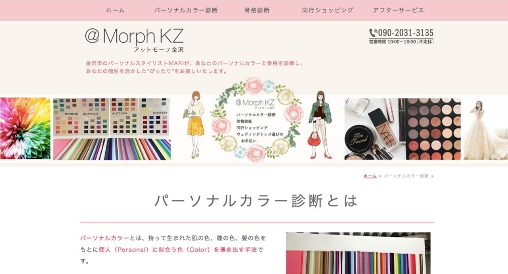@Morph KZは、カラーアナリストのMARIさんが運営するサロンで、4シーズンのパーソナルカラー診断を11,000円(税込)で受けられます。パーソナルカラー診断&骨格診断コースの場合は18,000円となります。