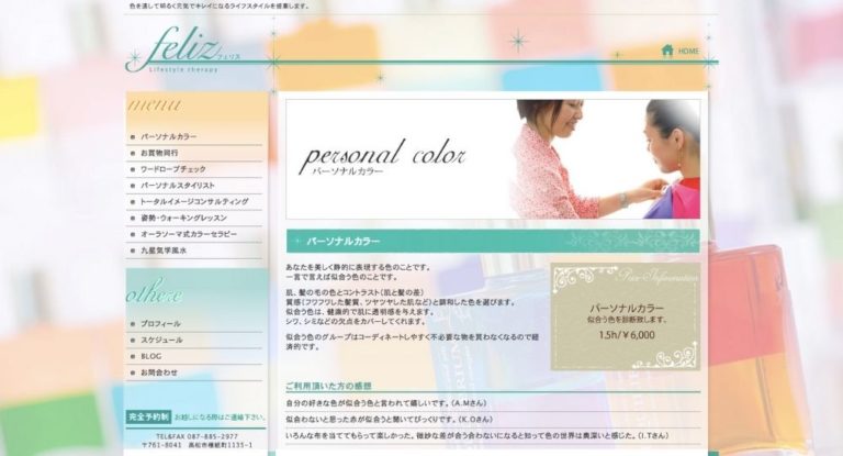 Felizは、パーソナルカラーアナリストの林さんが運営するカラーサロンで、4シーズンのパーソナルカラー診断を6,000円(税込)で受けられます。パーソナルカラー診断を含むトータルイメージコンサルティングの場合は24,000円となります。