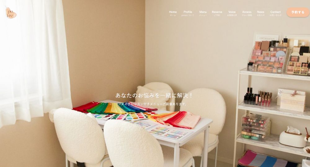 POIREは、神奈川県内にある人気のメイクレッスンサロンで、専門的なサロンを運営する120分のレッスンが税込15,000円で受けられます。パーソナルカラー診断の活用を重視したメイクを希望する方に特におすすめです。お顔の比率やパーツの形を数値的に分析。得意な髪型や柄、アクセサリーまでがわかります。