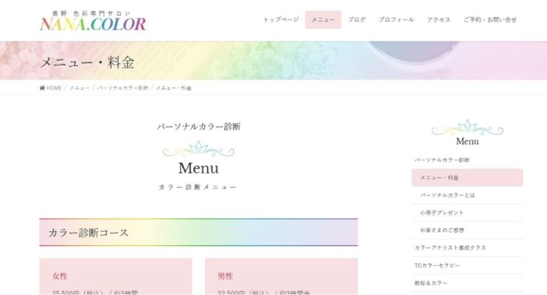 ②長野の価格帯 10,000円~15,000円のパーソナルカラー診断サービス