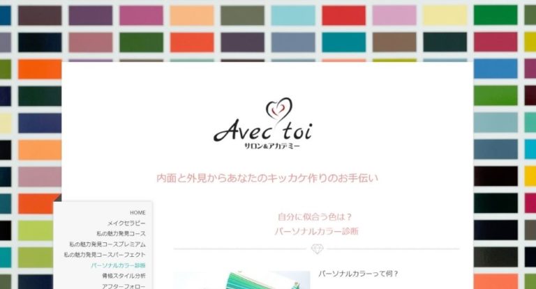 Avec toiは、パーソナルカラーアナリストの安藤さんが運営するカラーサロンで、4シーズンのパーソナルカラー診断を15,000円(税込)で受けられます。1日お一人様の完全予約制です。診断結果をいかしやすいアドバイスやポイントをまとめたコンサルタントシート付き。