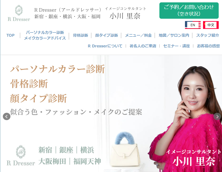 イメージコンサルタント小川里奈さんが代表をされる高田馬場のサロン、R Dresser。似合う色やファッション、メイクのご提案を、パーソナルカラー診断、骨格診断、顔タイプ診断を通して行っています。
